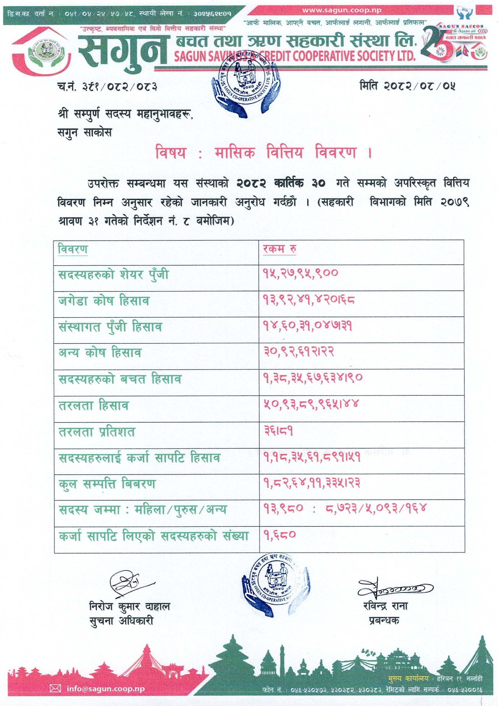 २०८२ कार्तिक महिना सम्मको वित्तीय विवरण ।