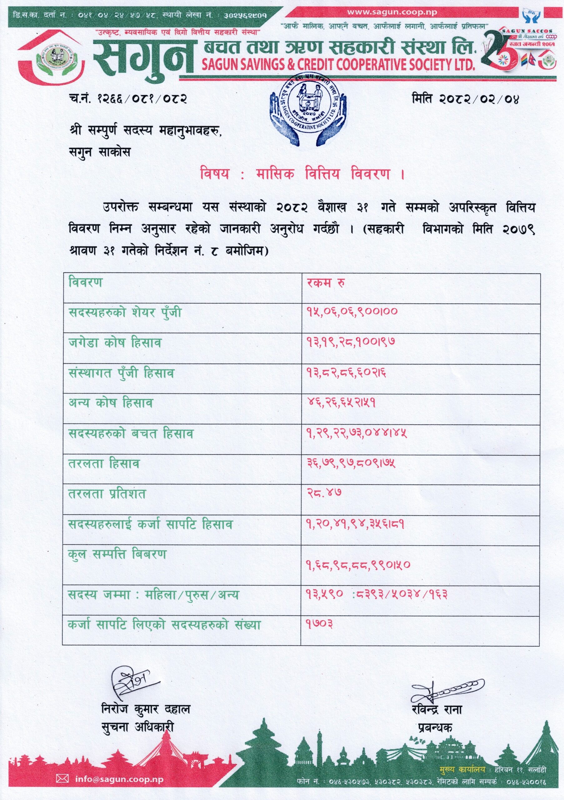 २०८२ वैशाख सम्मको बित्तीय विवरण ।